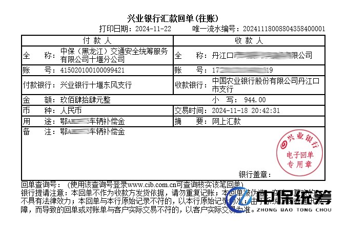 2024年11月15日12:10,統籌車輛鄂AK***5在丹江口市042縣道楊化綱村彎道路段行駛時,與對向行駛車輛鄂W8***C發生碰撞,造成車輛受損。我公司第一時間安排查勘人員到達現場處理。受損車輛后續維修定損過程我公司安排定損人員全程跟蹤,經我公司售后專業有效溝通,統籌補償共計:944元整。客戶對我公司的售后理賠專業及賠款速度均表示非常滿意,對我們中保統籌公司很認可,對我公司的服務質量給予了充分的肯定。
