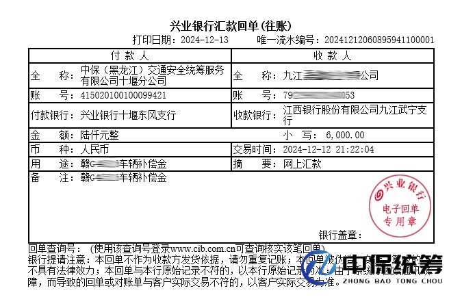 2024年12月1日18:05,統籌車輛贛G4***6在九江市武寧縣九嶺大道5號西海名居路段行駛時,操作不當將通信線路損壞,造成線路受損。我公司第一時間安排查勘人員到達現場處理。受損線路后續維修過程我公司安排定損人員全程跟蹤,經我公司售后專業有效溝通,統籌補償共計:15163元整。客戶對我公司的售后理賠專業及賠款速度均表示非常滿意,對我們中保統籌公司很認可,對我公司的服務質量給予了充分的肯定。